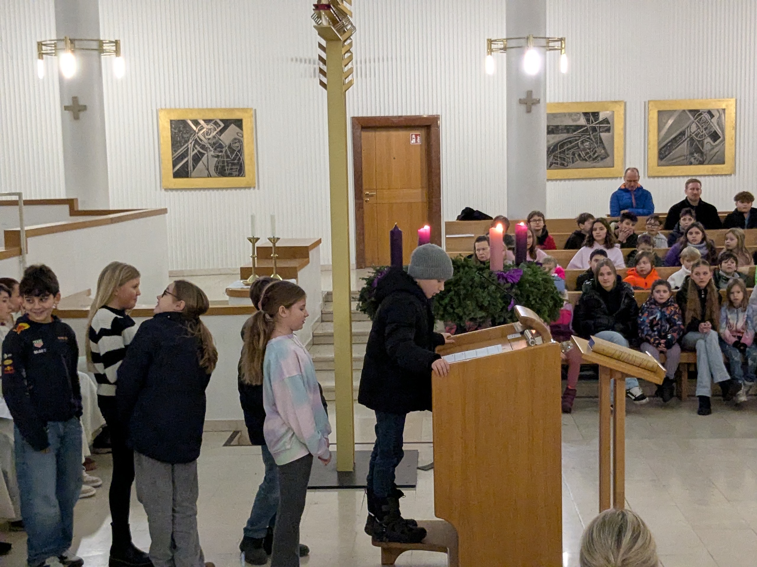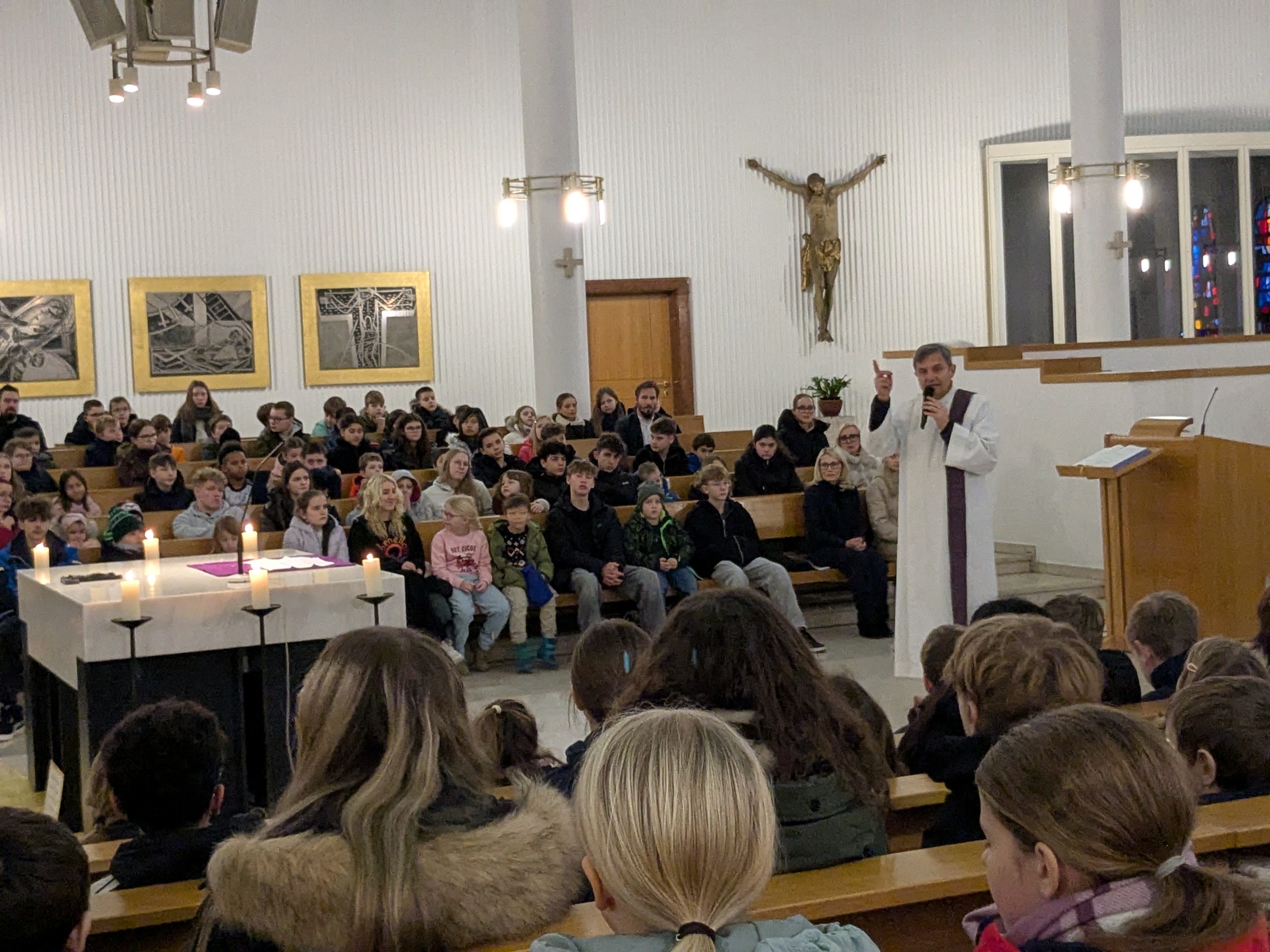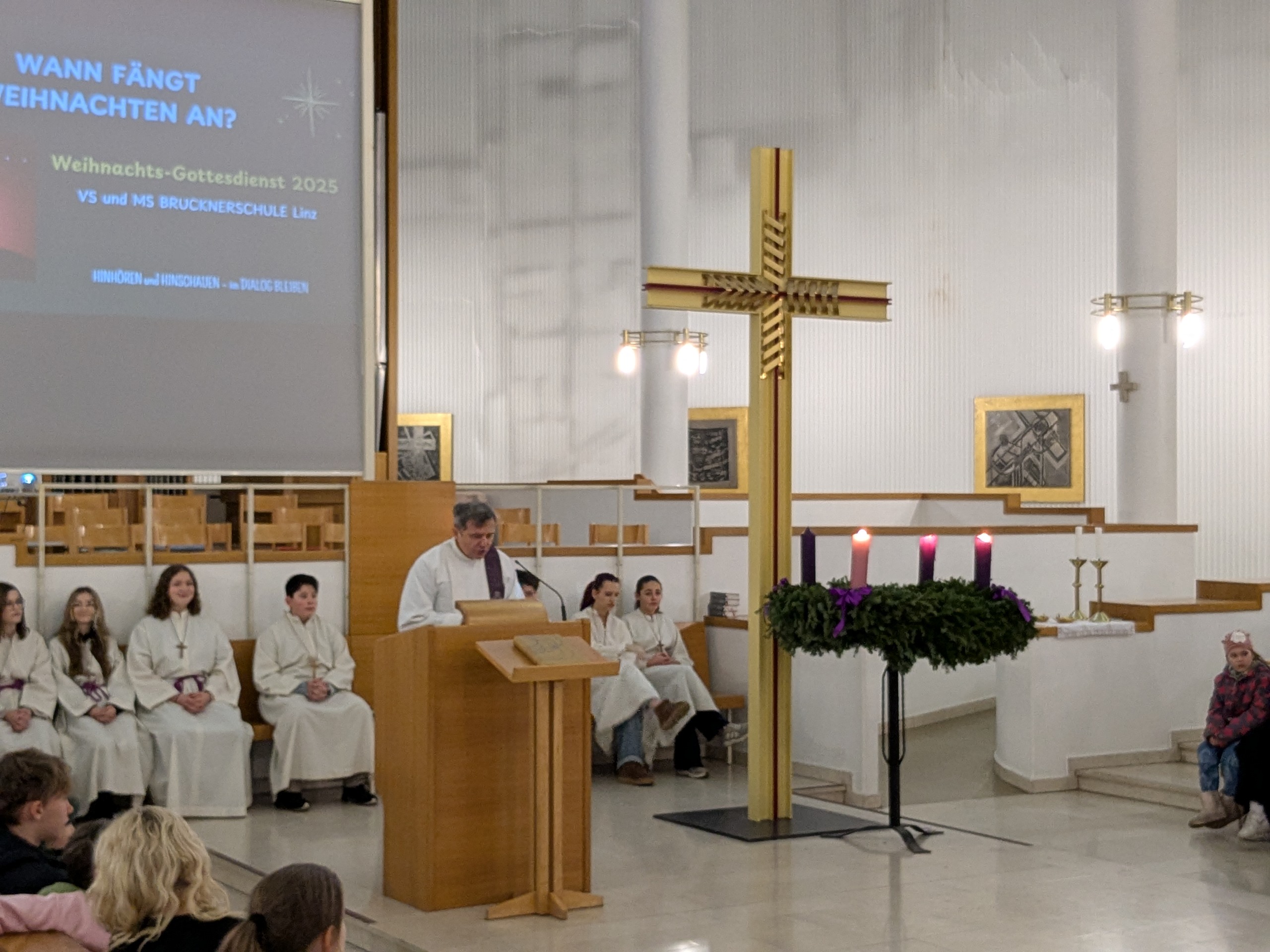 Wann fängt Weihnachten an? Mit diesem Gedanken begingen wir unseren Weihnachtsgottesdienst in der Bindermichl-Kirche, der von Seelsorger, Dipl.-Pass. Josef Danner geleitet wurde. Wir stimmten uns auf den Geburtstag von Jesus ein und gingen dem Geheimnis von Weihnachten nach. Adventliche Musik holte uns ab und ließ uns spüren, dass es mehr geben muss als Äußerlichkeiten, vielleicht die Sehnsucht nach Liebe und Frieden.