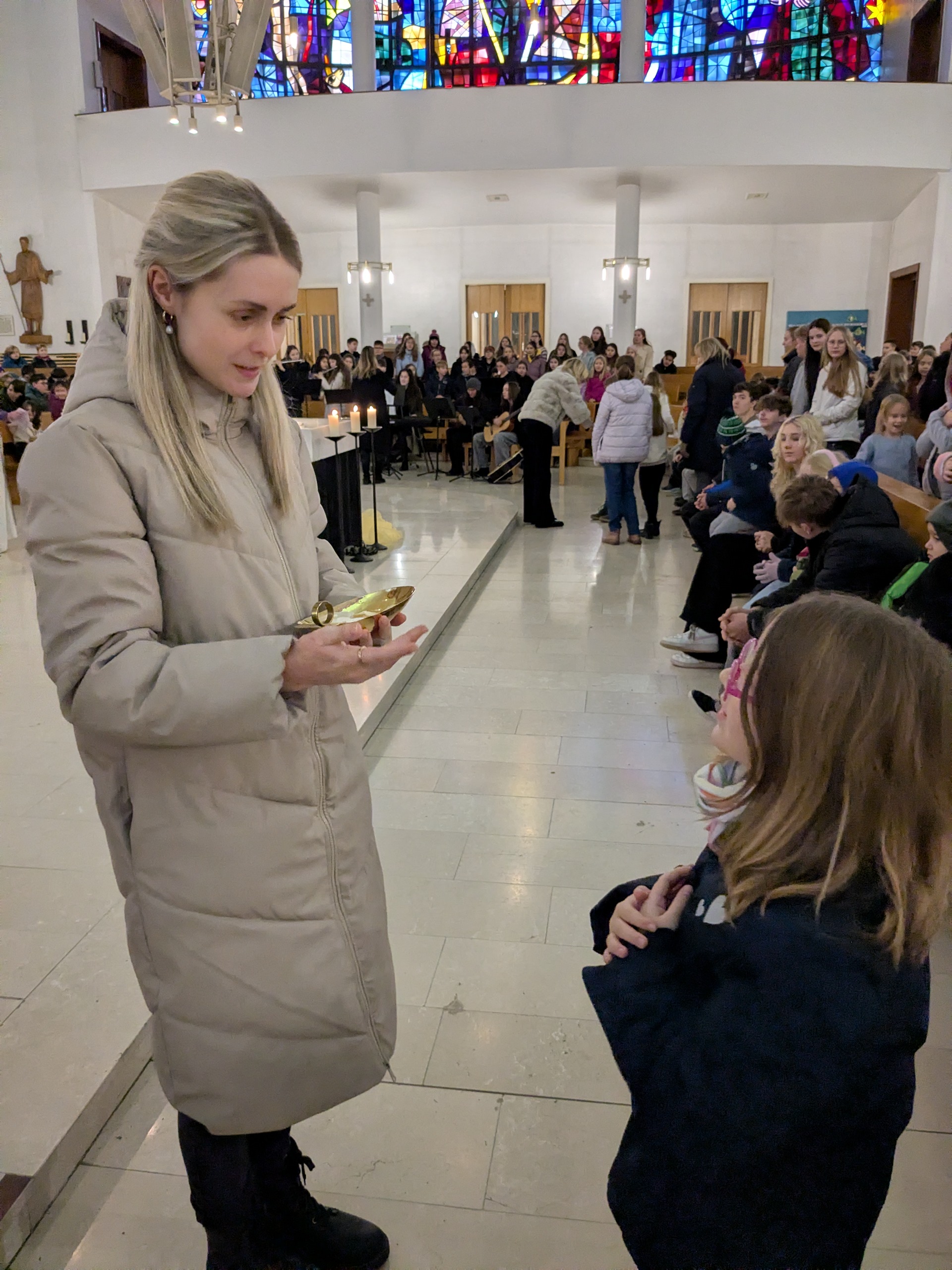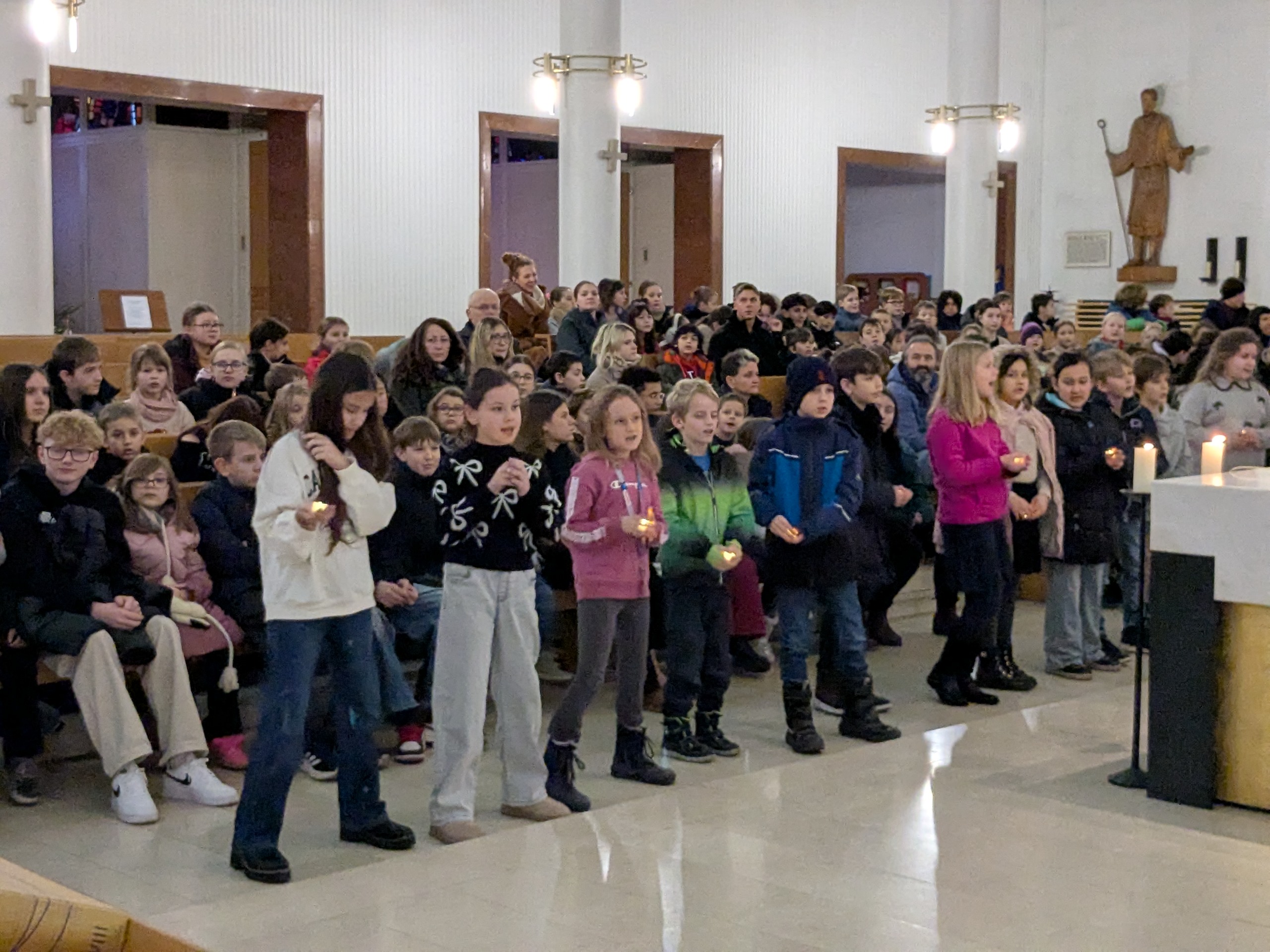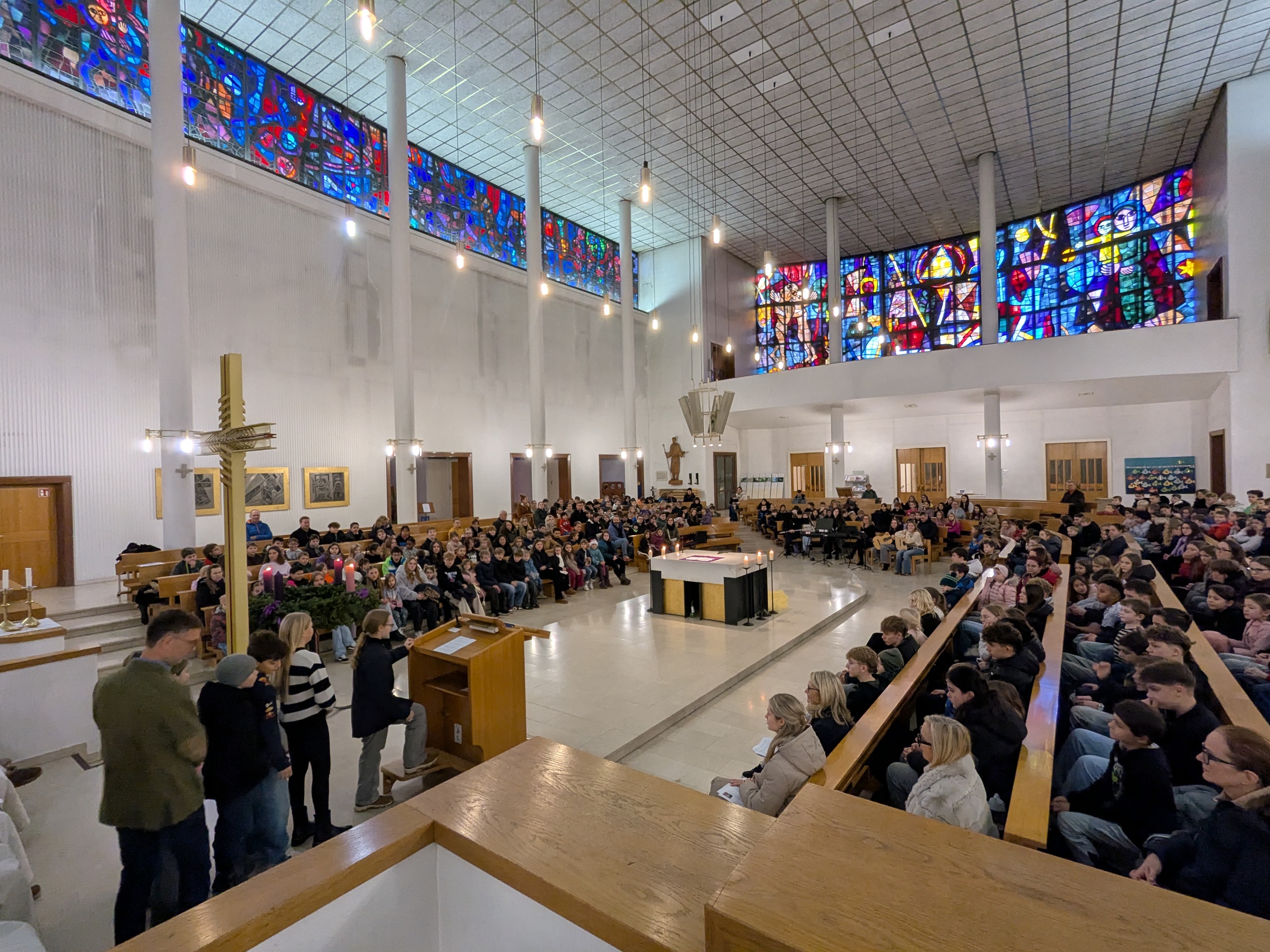 Wann fängt Weihnachten an? Mit diesem Gedanken begingen wir unseren Weihnachtsgottesdienst in der Bindermichl-Kirche, der von Seelsorger, Dipl.-Pass. Josef Danner geleitet wurde. Wir stimmten uns auf den Geburtstag von Jesus ein und gingen dem Geheimnis von Weihnachten nach. Adventliche Musik holte uns ab und ließ uns spüren, dass es mehr geben muss als Äußerlichkeiten, vielleicht die Sehnsucht nach Liebe und Frieden.