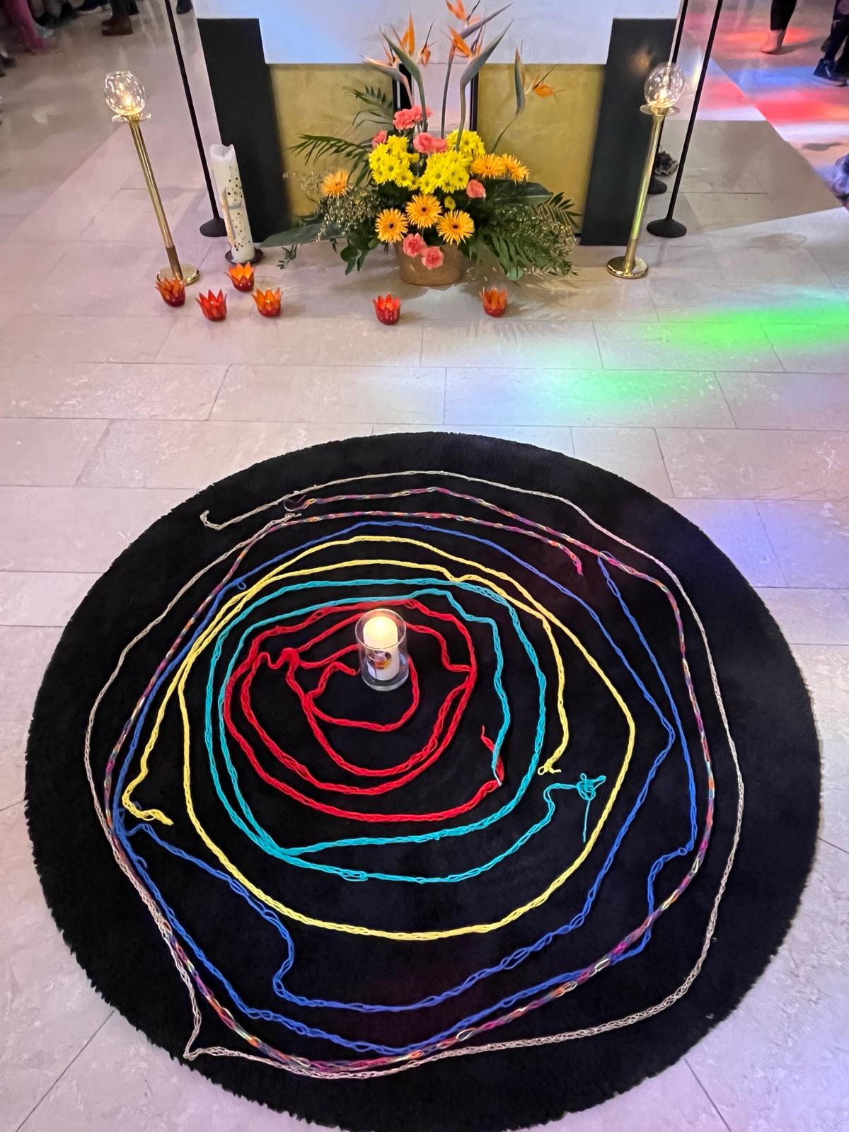 Zu den Liedern „Frieden wünsch ich dir“ und „Den roten Faden Liebe“ entsteht ein Kreuz als Zeichen der Hoffnung: