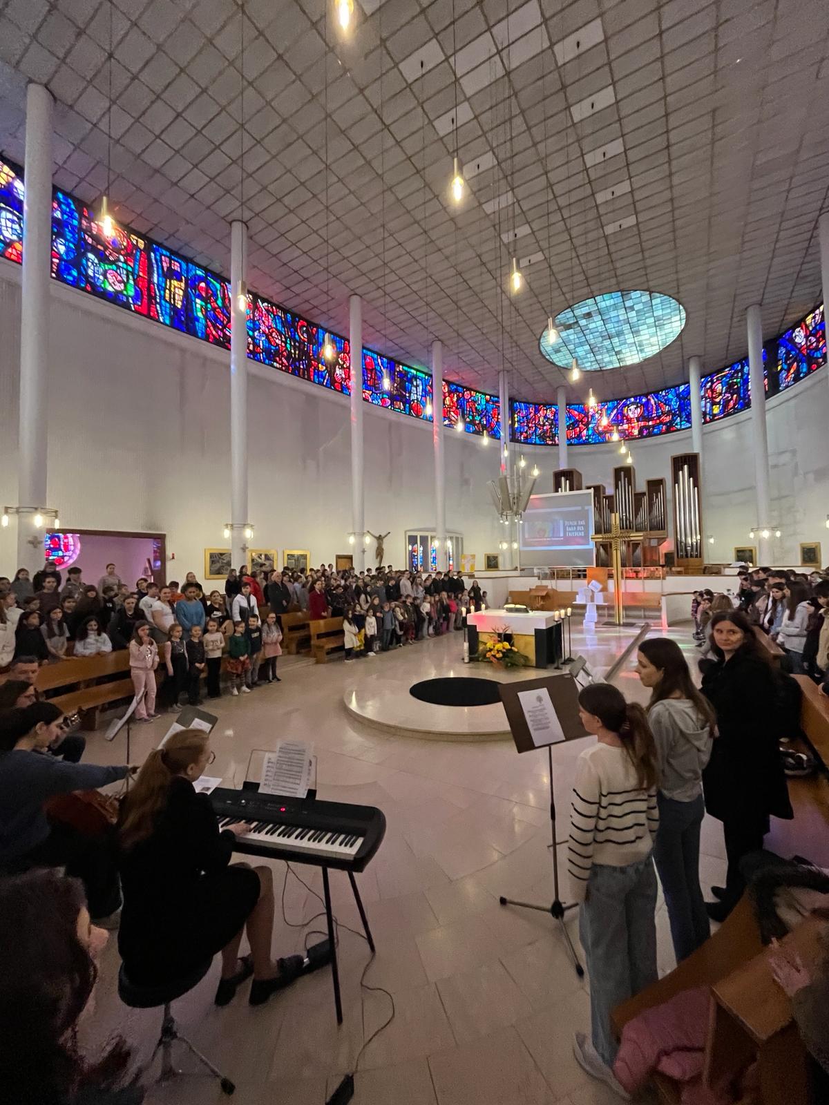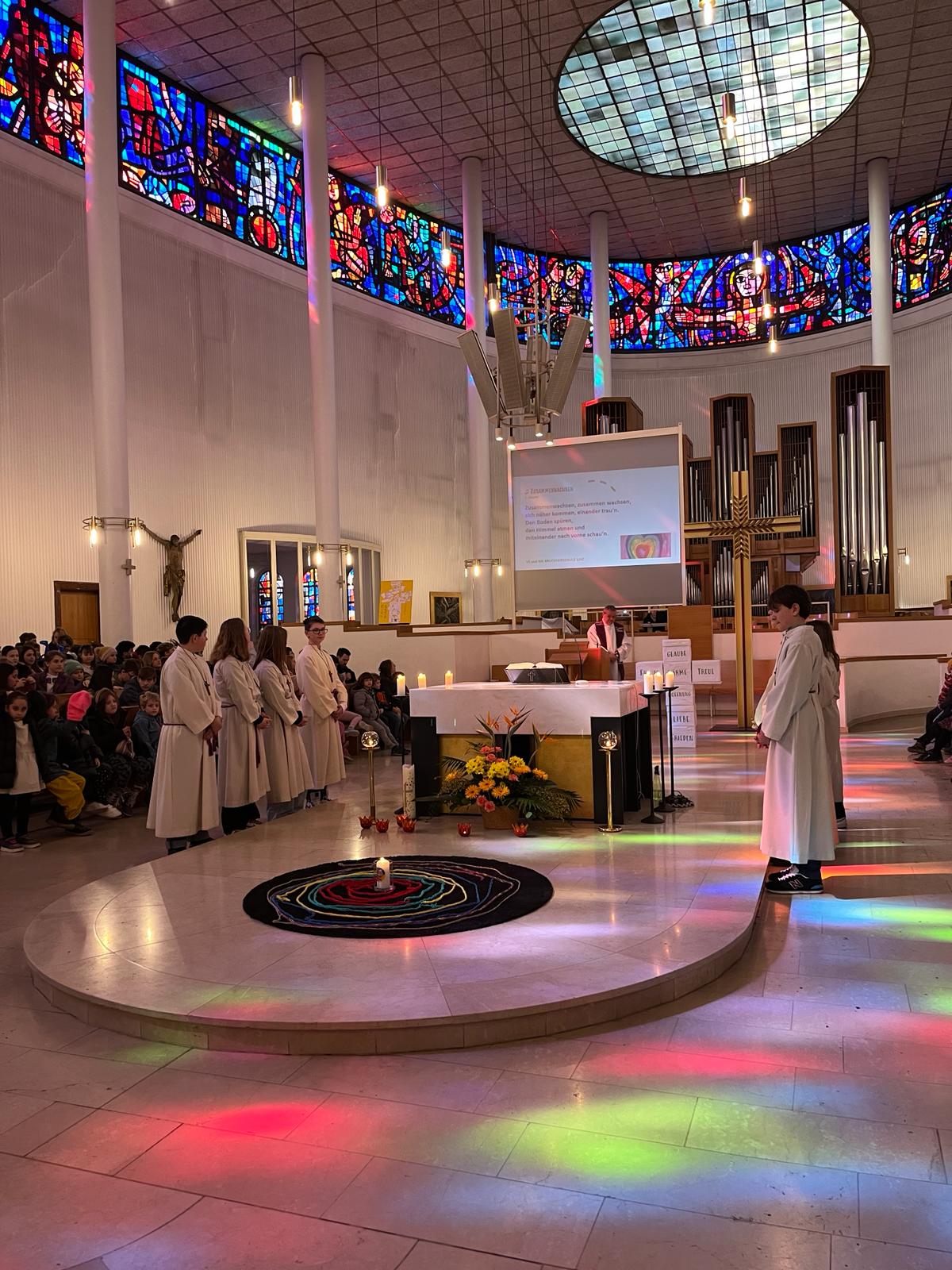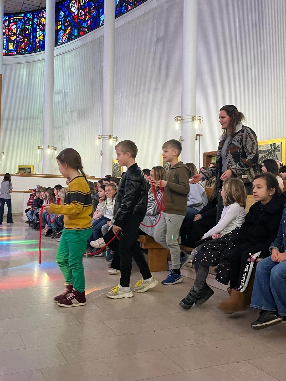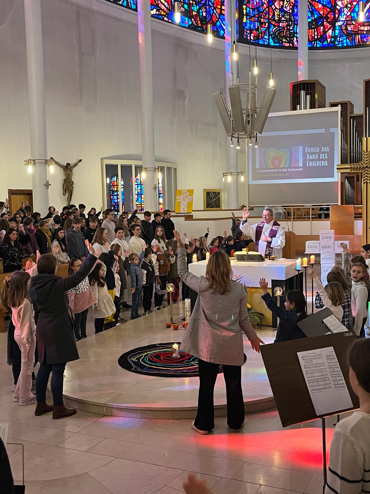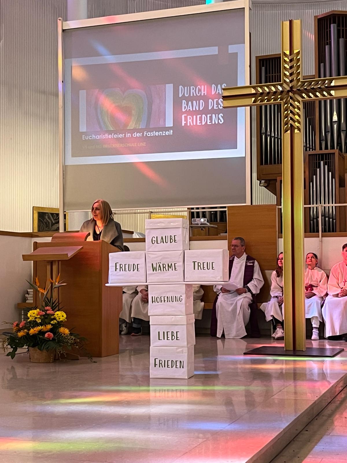 Am Mittwoch vor den Osterferien machen sich die VS-Kinder und die Großen aus der Mittelschule gemeinsam auf den Weg zum Gottesdienst in der Kirche am Bindermichl. Mag. Markus Vormayr, unser Schulseelsorger, leitet die Messe mit dem Leitwort „Durch das Band des Friedens“.