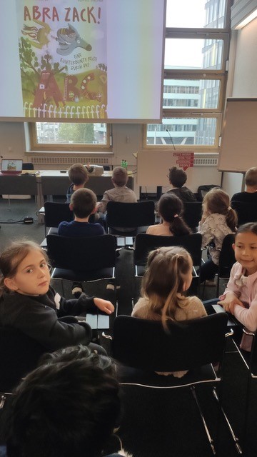 Im Rahmen der Linzer Kinder- und Jugendbuchtage besuchte die 2B der Volksschule eine Lesung von Susa Hämmerle. Die österreichische Autorin stellte zwei ihrer Bücher vor – „Abra Zack“ und „Der Feuervogel“. Die Kinder waren gefesselt von den spannenden und lustigen Geschichten und durften auch viele Fragen stellen. Am Schluss bekam noch jedes Kind eine Autogrammkarte und eine Feder vom Feuervogel.