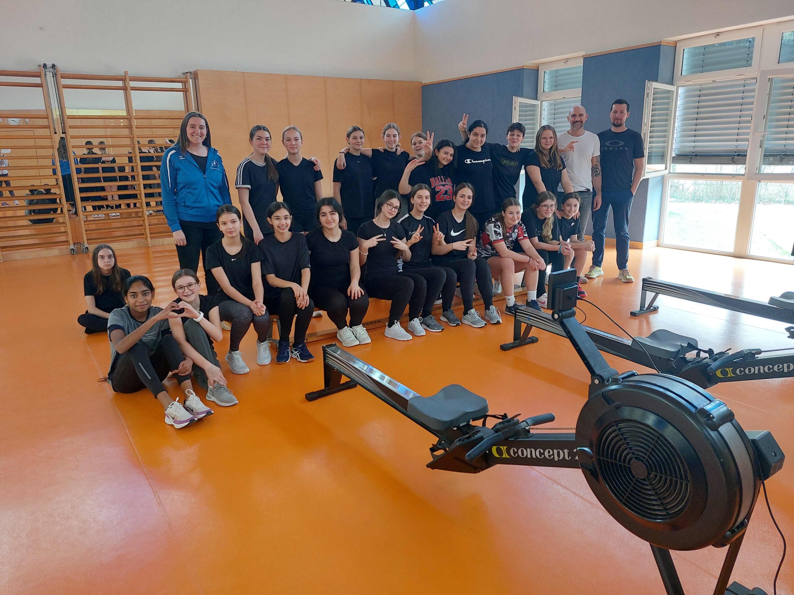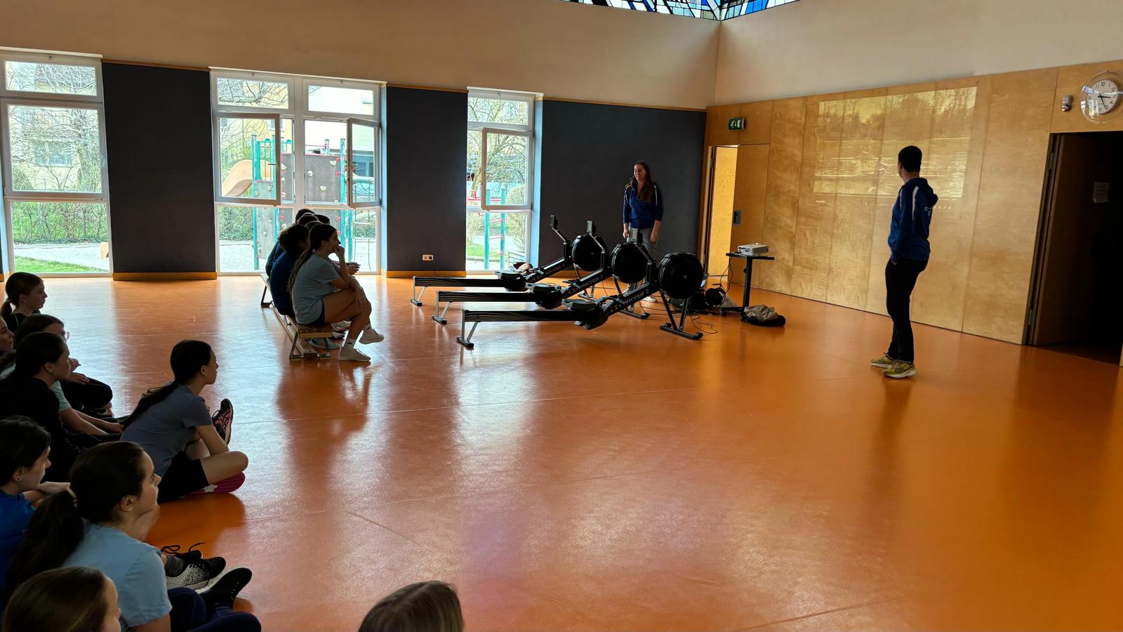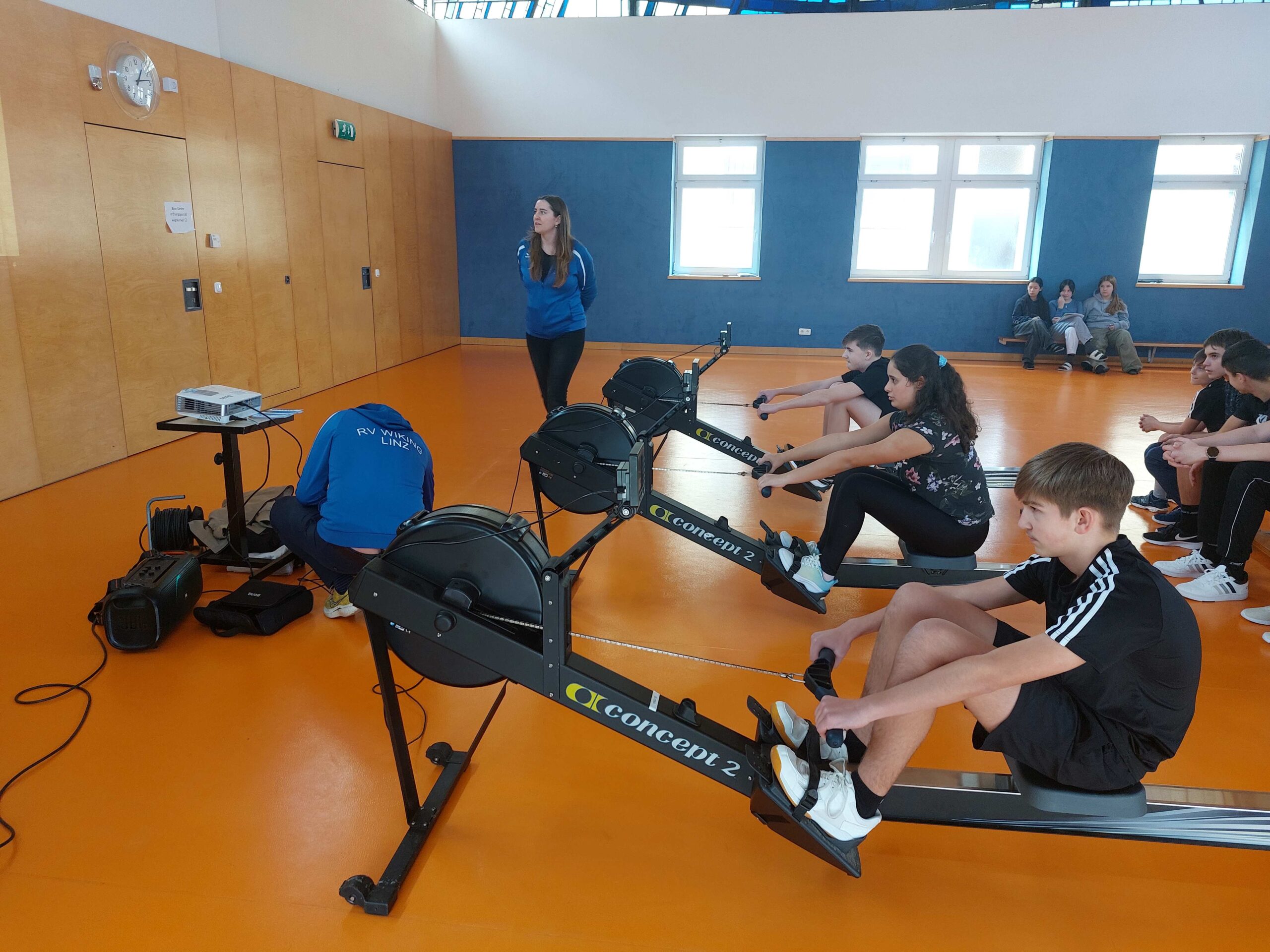 Professionelle Trainerinnen und Trainer des Rudervereins Wiking Linz besuchten uns mit Ruderergometern im Gepäck und gestalteten ein Probetraining zum Kennenlernen der Sportart.