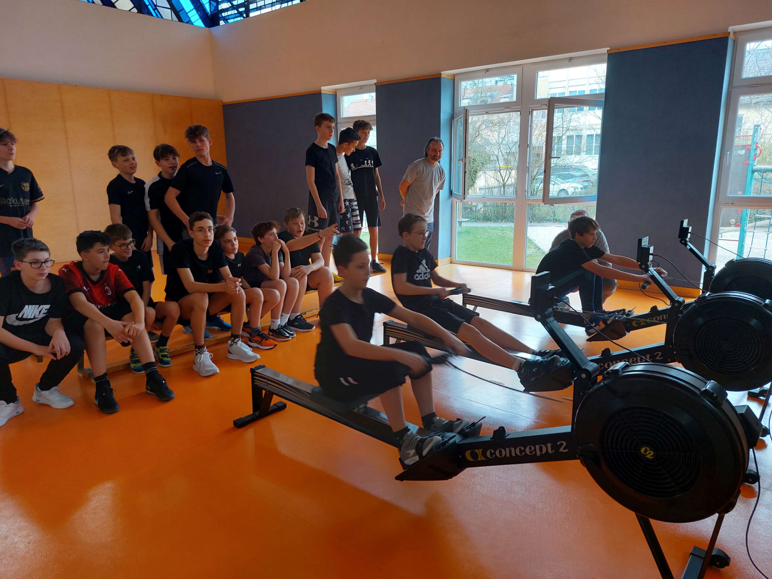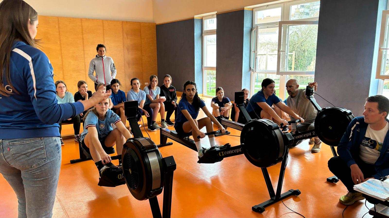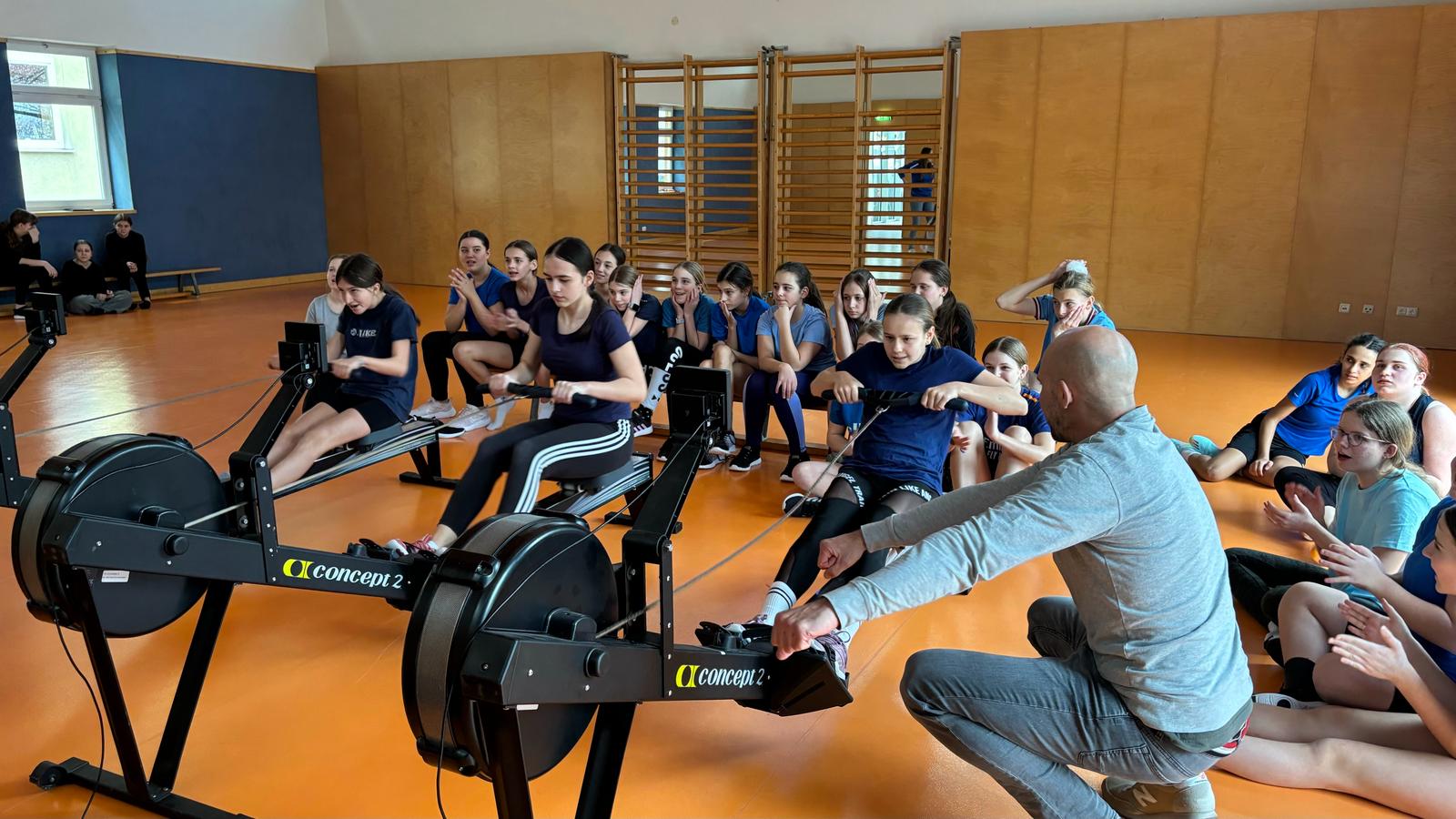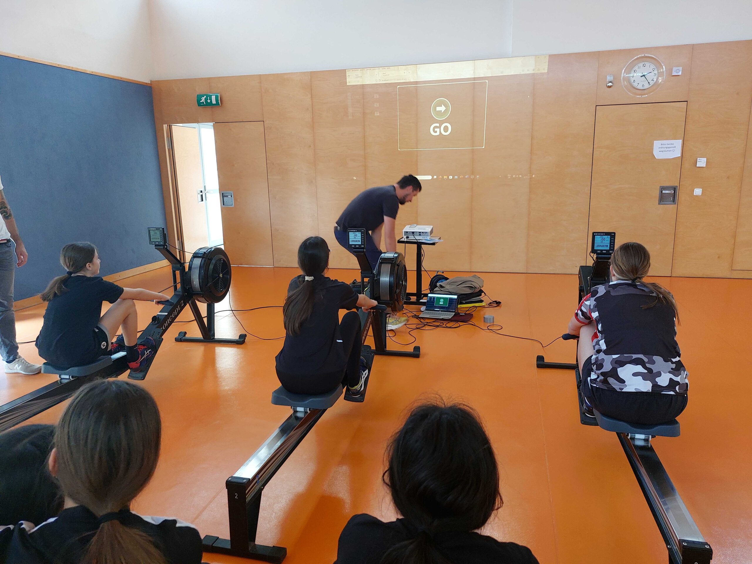 Nach einer kurzen technischen Erklärung durften alle Schüler:innen selbst den Ruderergometer ausprobieren und schließlich ihr Können in einem 250m Rennen unter Beweis stellen.