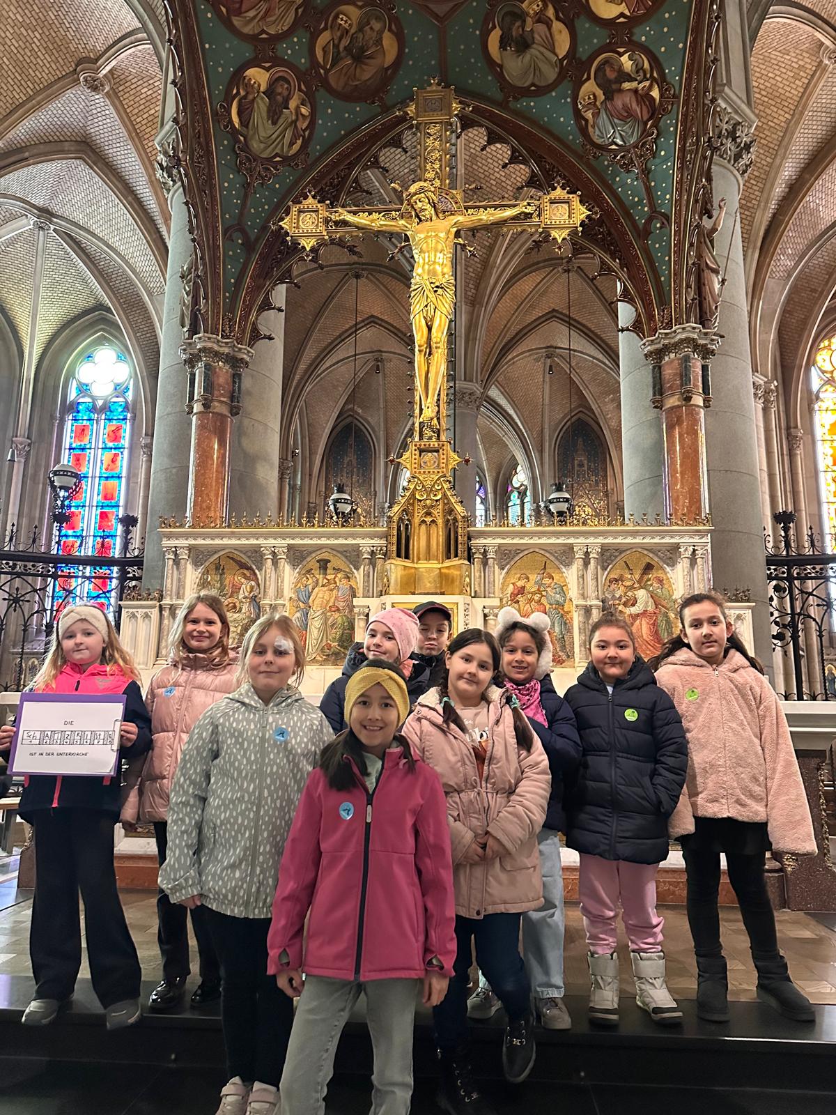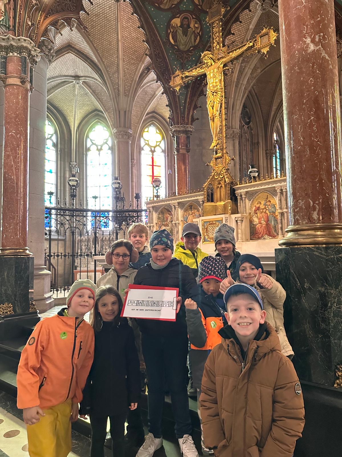 Die Kinder der 2. Klasse Volksschule besuchten am 25. März den Mariendom und nahmen an der Themenführung “Verborgene Botschaften und Schätze” teil. Der Mariendom ist nicht nur die größte Kirche Österreichs, sondern auch eine große Schatztruhe. Viele kostbare Dinge gab es zu entdecken und wie Schatzsucher versuchten die Kinder, die Hinweise und Rätsel zu lösen. Beeindruckt von den farbenfrohen Glasfenstern und der geheimnisvollen Krypta erzählten die Kinder noch am nächsten Tag davon.