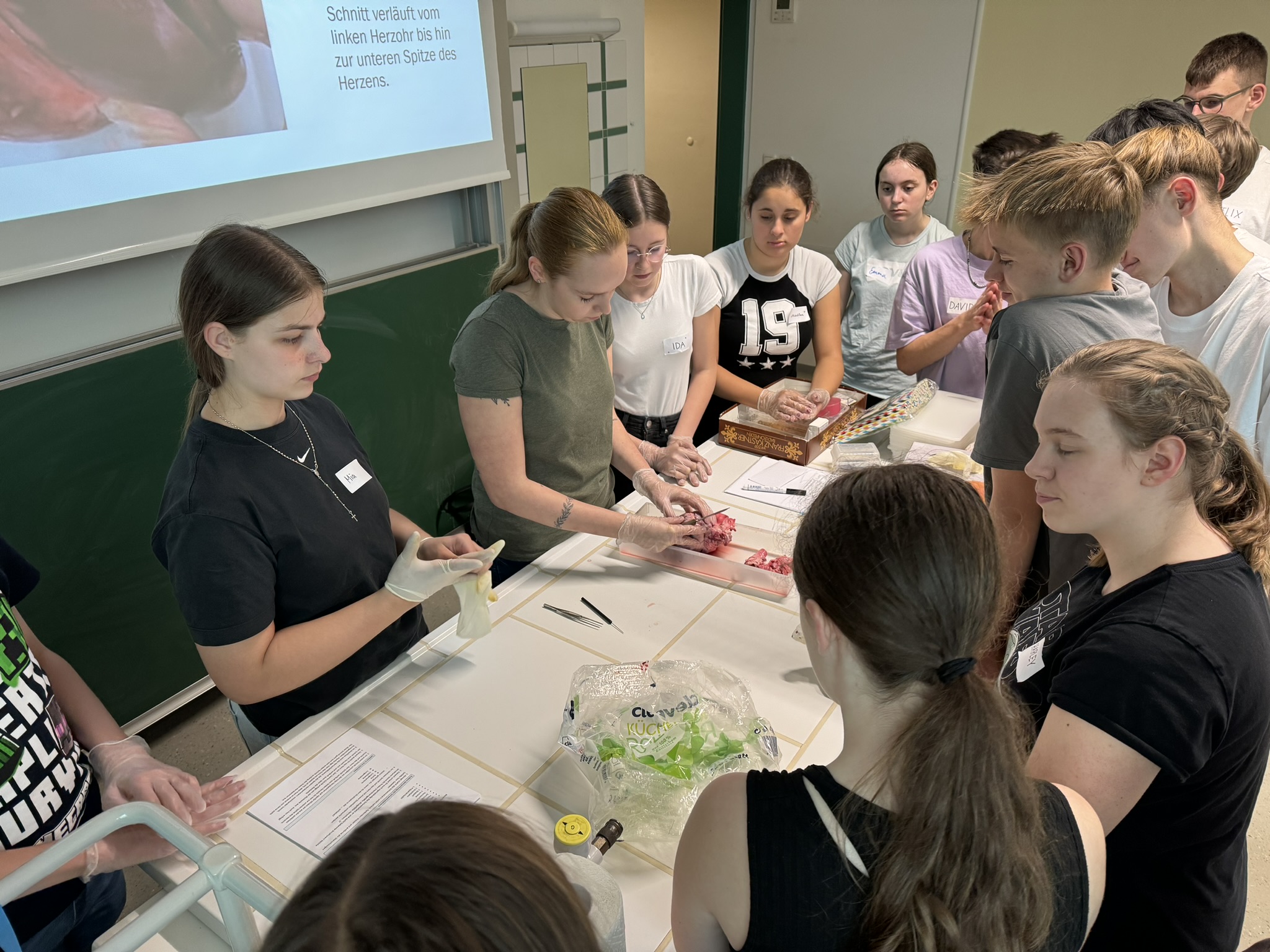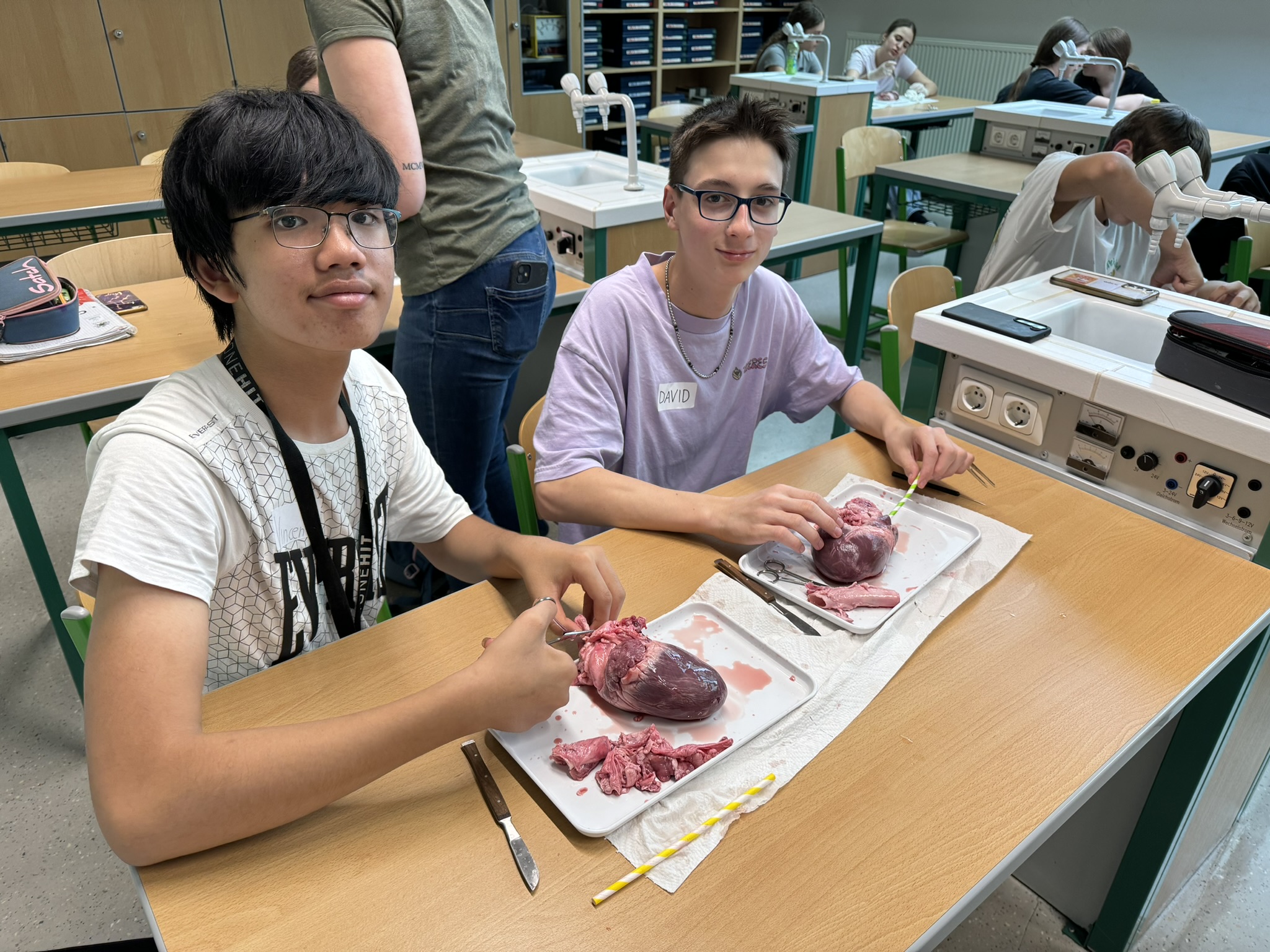 Die Burschen und Mädchen staunten über den Aufbau und die Stärke dieses faszinierenden Hohlmuskels. Sie durften mit großer Begeisterung ein Herz zerschneiden und erforschen.