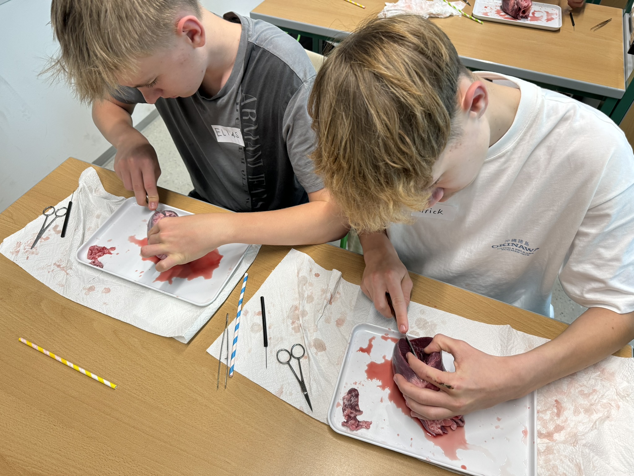 Nachdem wir im Unterricht über das Herz gelernt haben, konnten die Schüler:innen der 4.Klassen freiwillig an einem Nachmittag mit sehr großem Interesse Schweineherzen sezieren.
