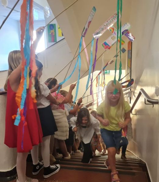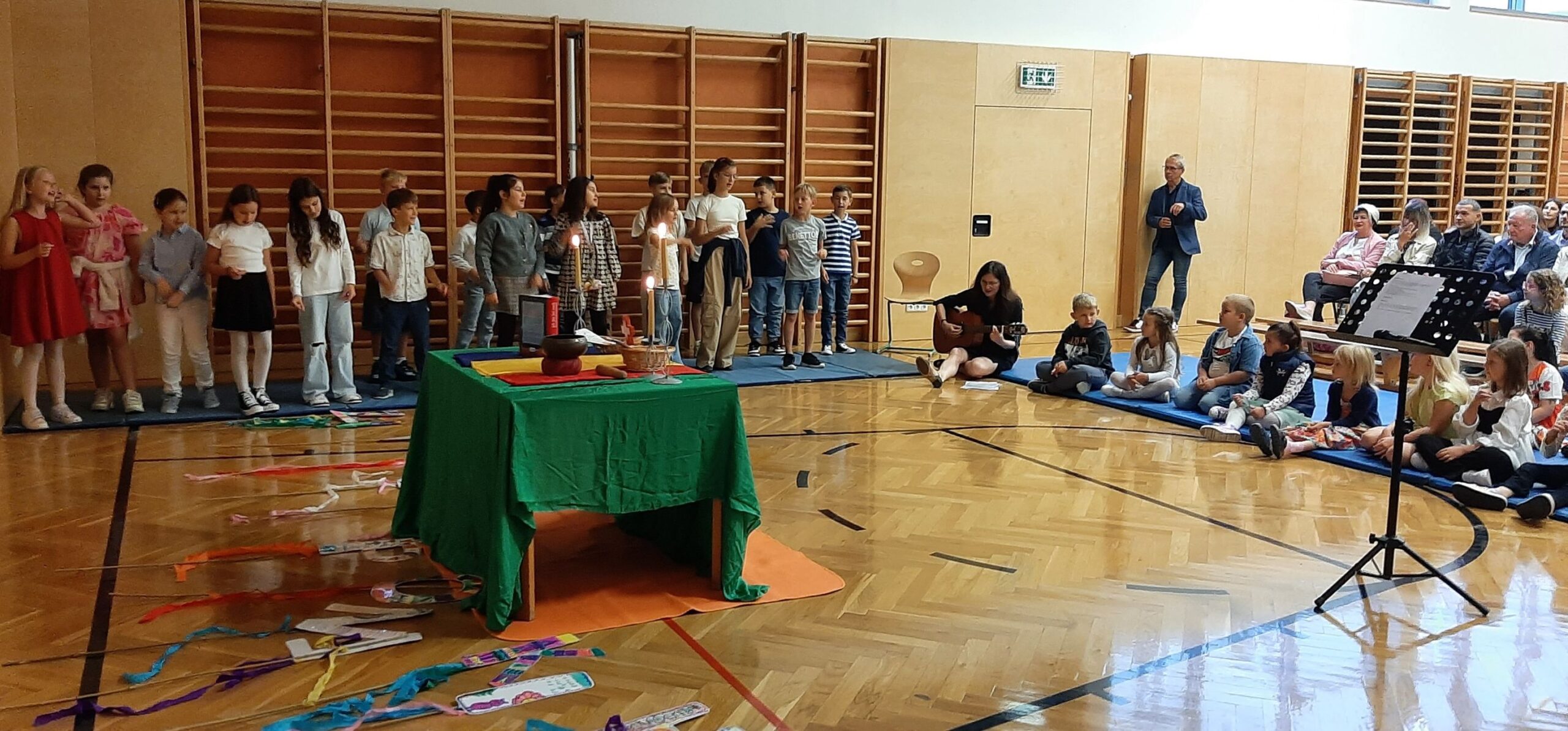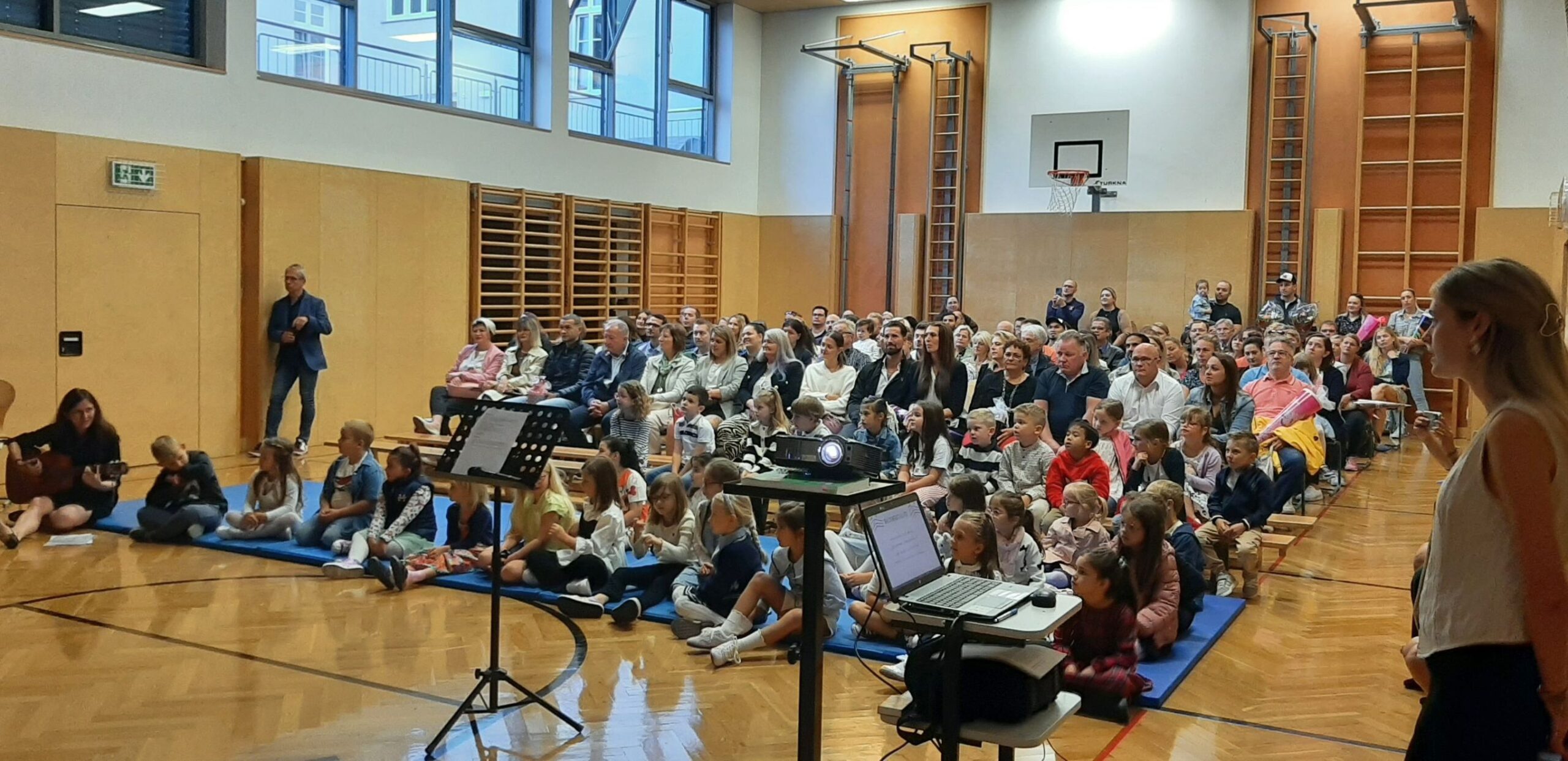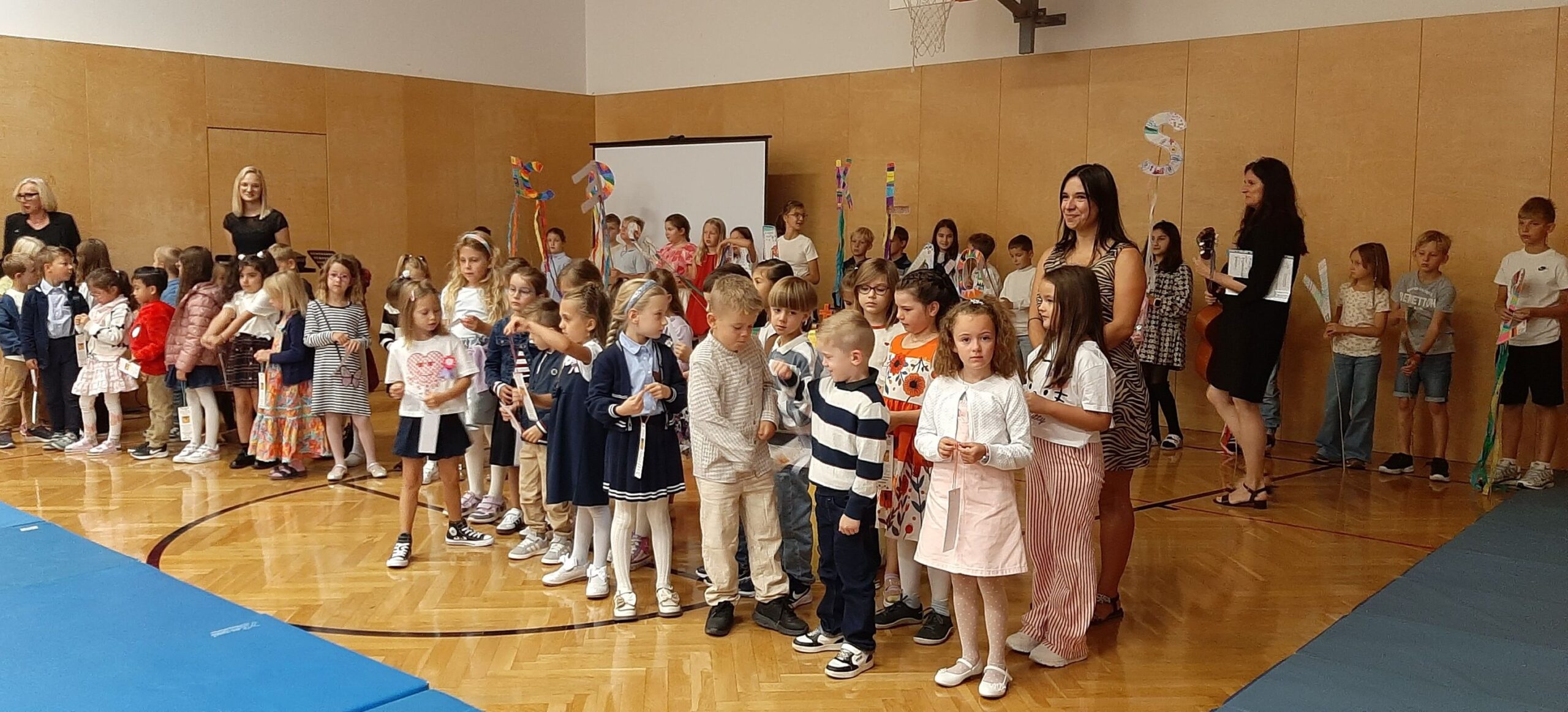 Für die musikalische Umrahmung sorgten die Kinder der 4A-Klasse und Frau Ottenschläger-Holzer. Unsere Großen begleiteten die Erstklässler auf ihrem Weg in die Klasse: Ein buntes Bild für unsere große Schulgemeinschaft: