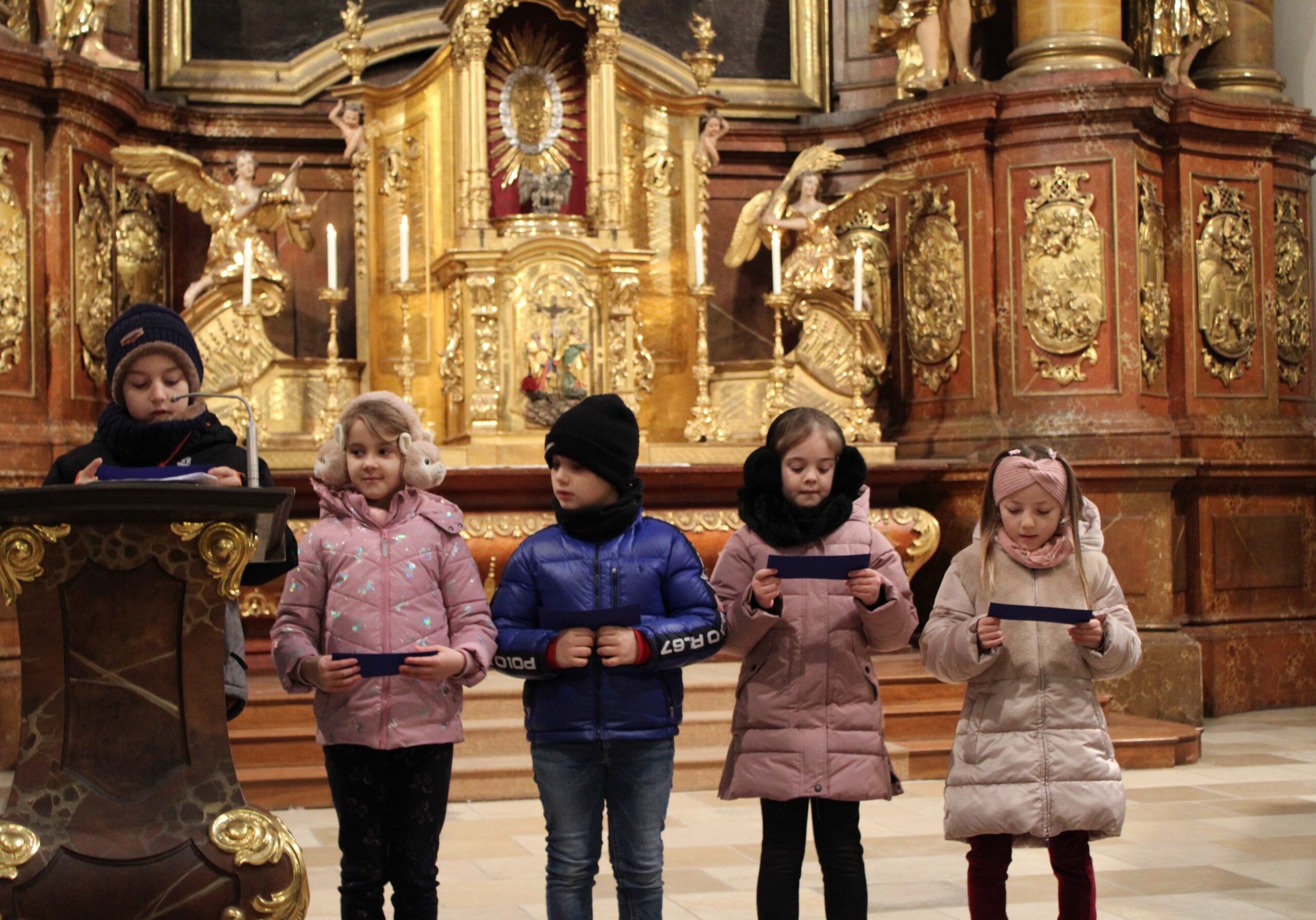 GR Dr. Andreas Altrichter leitete die Hl. Messe. Besonders schön wurde sie durch die musikalische Gestaltung und das begeisterte Singen der Kinder. Zum Abschluss teilten die Kinder die vorbereiteten Karten für eine Gebetspatenschaft in ihren Familien aus. Mit Gottes Segen begleiten wir sie: