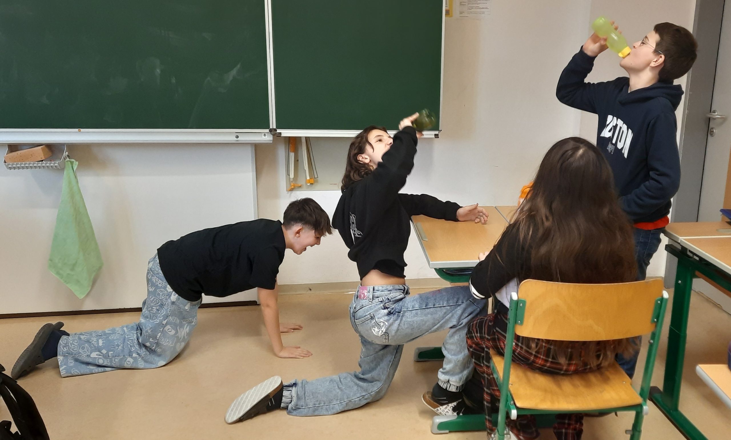 Im szenischen Spiel erproben die Kinder ihre Fähigkeit, einen ungewöhnlichen Ort in Bildern oder mit Handlungen darzustellen. Mit viel Begeisterung und Spaß wird diese Herausforderung angenommen. Alle Schülerinnen und Schüler sind mit kreativen Ideen bei der Aufgabe.