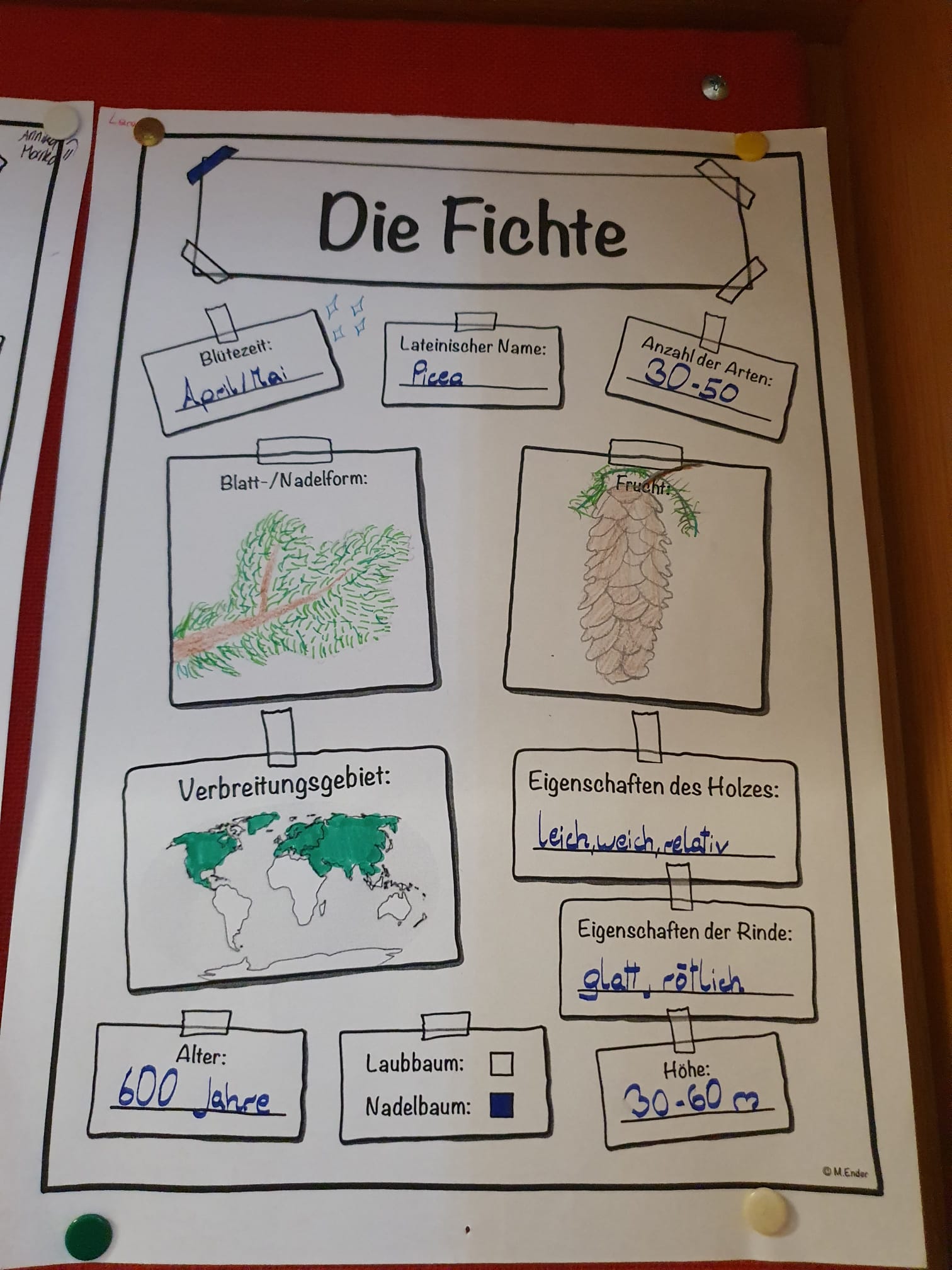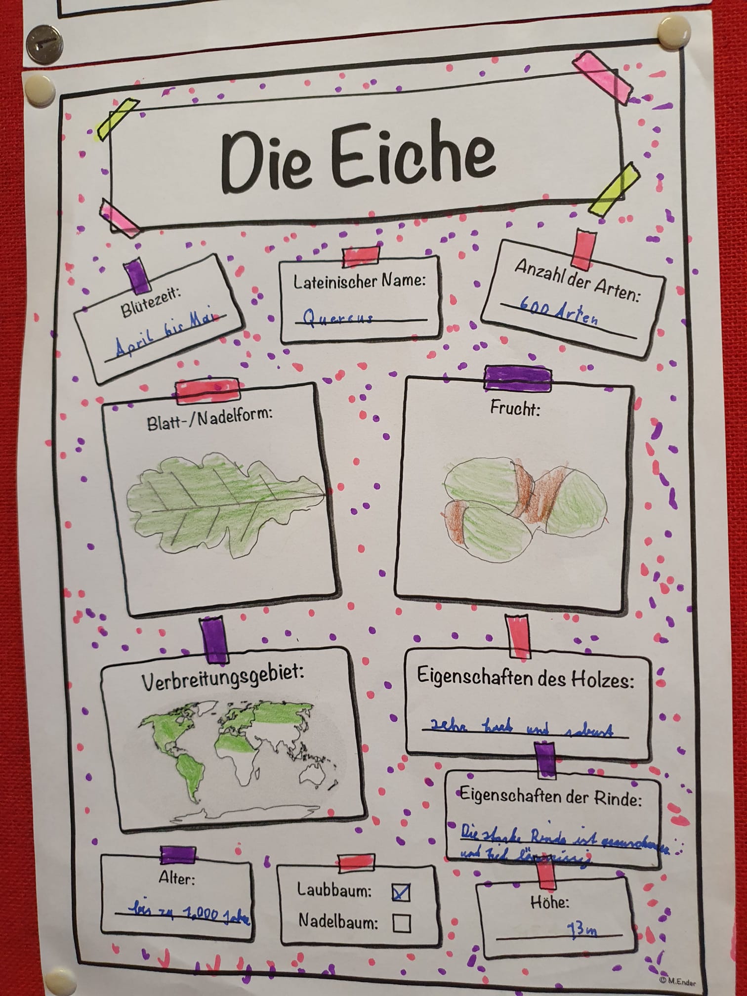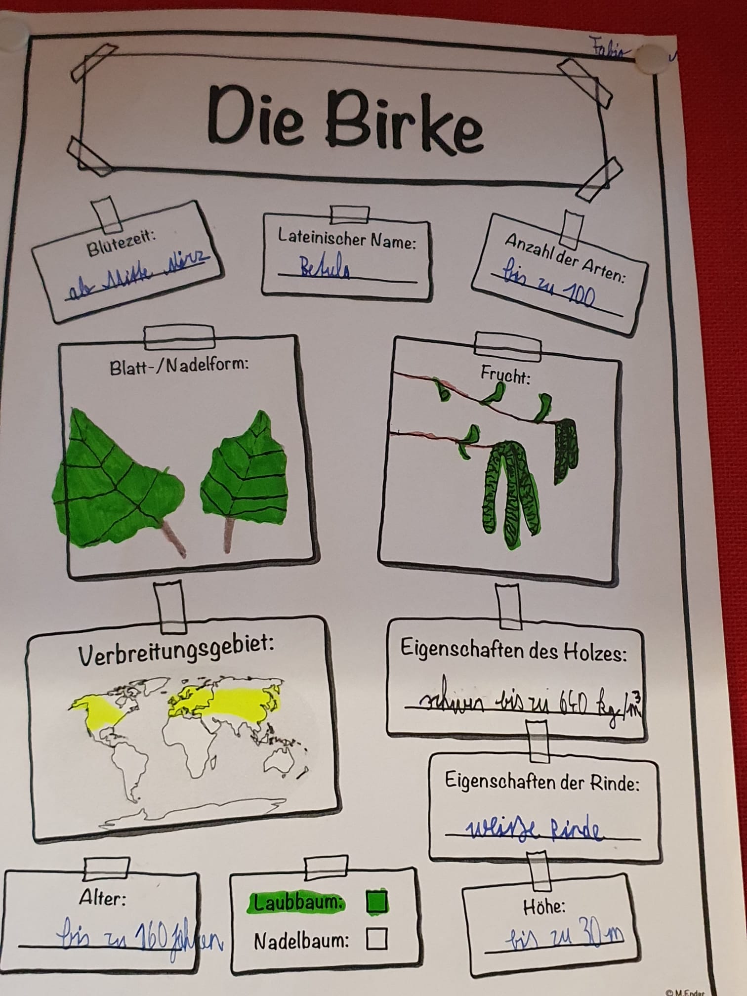 In Biologie beschäftigten sich die 2.Klassen mit unseren Laub – und Nadelbäumen.Mit großem Interesse recherchierten sie im Internet und gestalteten Steckbriefe verschiedener Baumarten, die in unseren Parks und Wäldern zu finden sind.