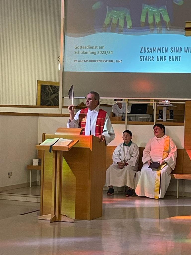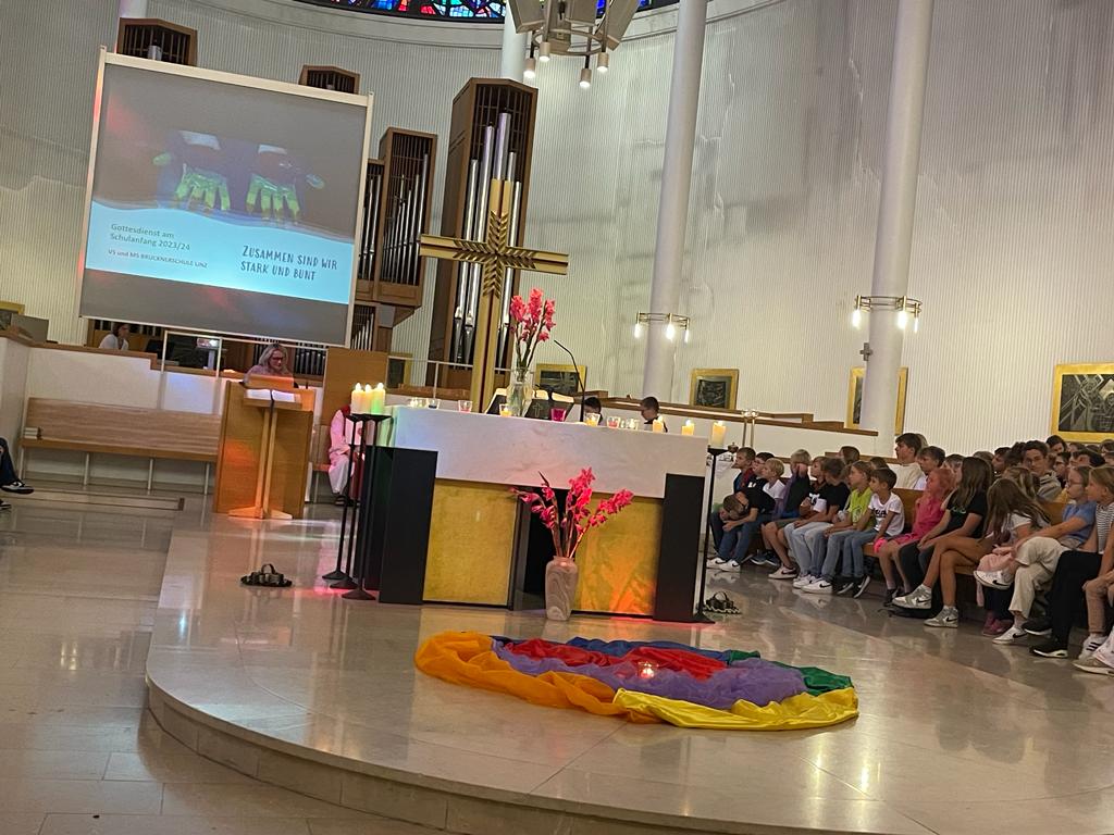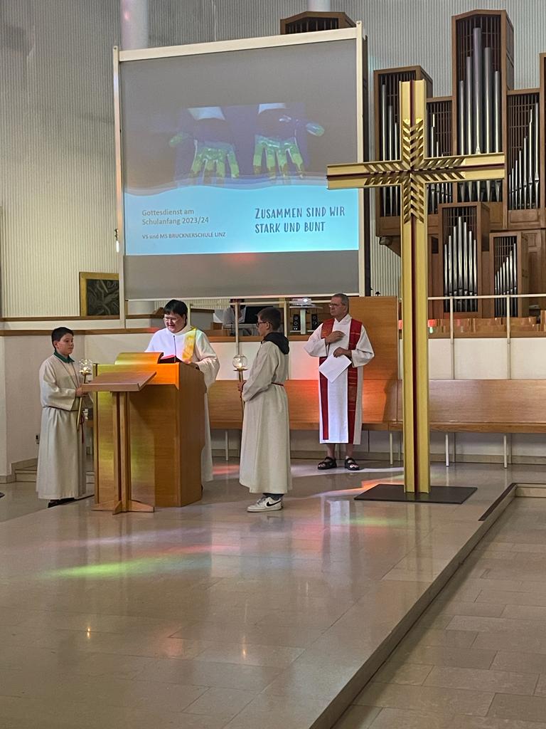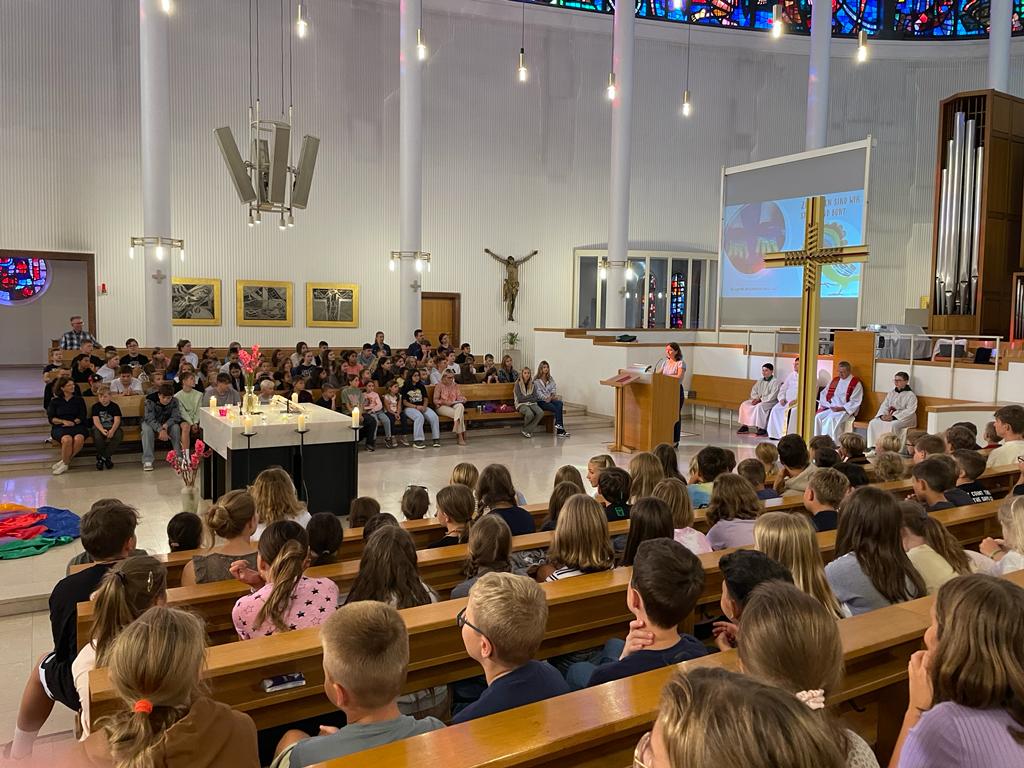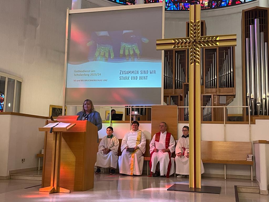 Am Freitag in der ersten Schulwoche feiern alle Schüler:innen der Brucknerschule gemeinsam den Gottesdienst in der Bindermichl-Kirche.